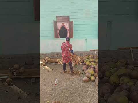 Ada sekitar 8000 Butir kelapa harus dia kupas, bersama seorang pria muda yang tampaknya kerabat dekatnya di kebun itu.